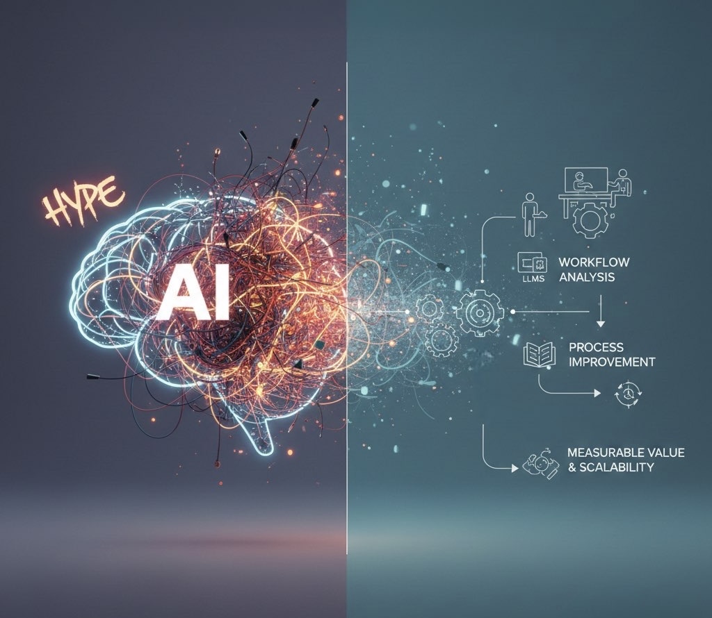 But at OMGNA, we believe real efficiency doesn’t start with tools; it starts with understanding workflows, identifying bottlenecks, and improving processes phase by phase.